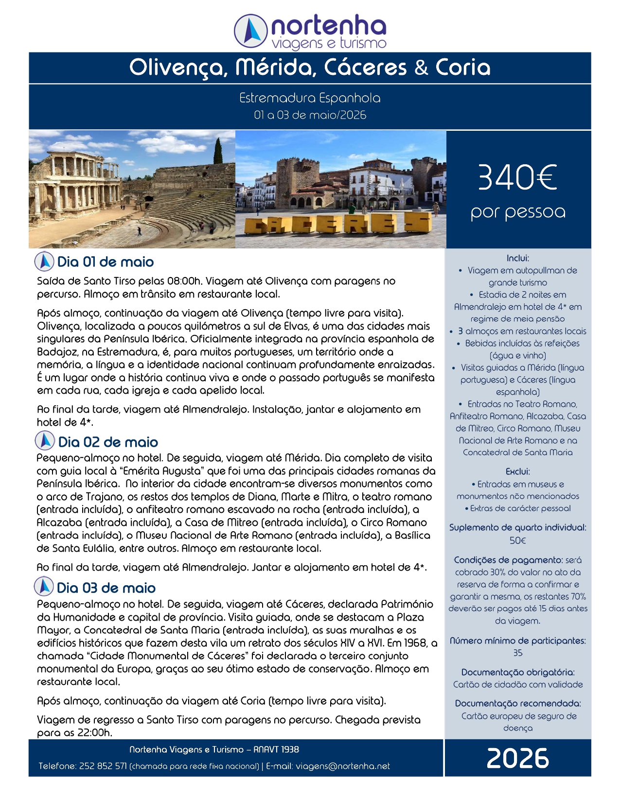 - Visitas guiadas a Mérida (língua portuguesa) e Cáceres (língua espanhola)