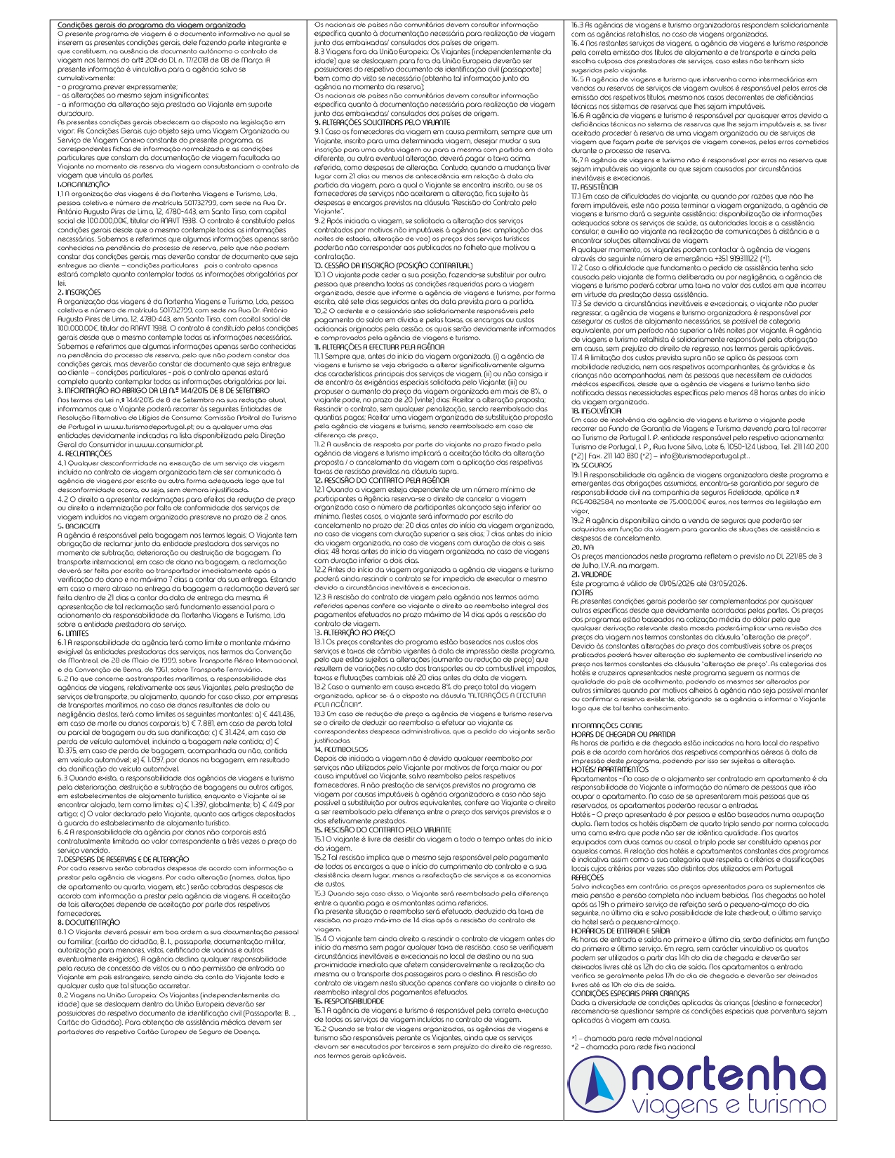 - Será cobrado 30% do valor no ato da reserva de forma a confirmar e garantir a mesma, os restantes 70% deverão ser pagos até 15 dias antes da viagem